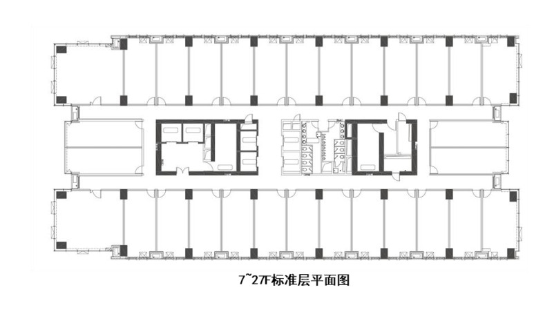 B栋总高27层,办公可售总面积约4.1万㎡,标准层面积约1733.82㎡,为东西向排布,配备4部客梯两部货梯。1楼是挑高约8.05米的大堂并有四套沿街商铺,(2-5层办公层高约3.55米;2楼为约117.8平的保安室和8套办公,单层面积约501.67㎡;(5套53平左右,1套58平左右,2套83左右和89平左右)3-6层单层20套,单层面积约1191.77㎡(2套104平左右,1套58平左右,17套53平左右)建筑体和商业相连。7楼到27楼是此次推出的小面积办公产品标准层,单层面积约1700㎡,每层30套(每层2套104平左右,2套61平左右,26套53平左右),总共718套可售。面积段为53,58,61和83,89,104㎡左右(转角边套约为104平米),套于套之间是可以互相打通的,灵活使用。这个面积段在目前整个上海办公市场非常罕见,在中环线寸土寸金的地段可以说是绝无仅有的稀缺产品。目前由于房地产新政的推出,以后市面上不可能再有150平米以下的办公了,所以此次B栋的约53-104㎡办公可以说是最后的稀缺产品。