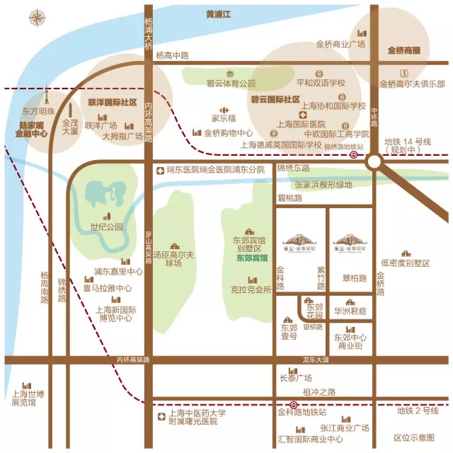 • 配套优势:周边高端别墅云集,正邻东郊国宾馆,碧云、联洋、花木三大国际社区环伺,地铁2号线金科路站,地铁14号线锦绣东路站(规划中),经龙东大道可达浦东机场、虹桥机场。毗邻中欧商学院,周边国际博览中心、东方艺术中心等艺术资源;汤臣高尔夫、长泰广场、曙光医院等休闲医疗资源。