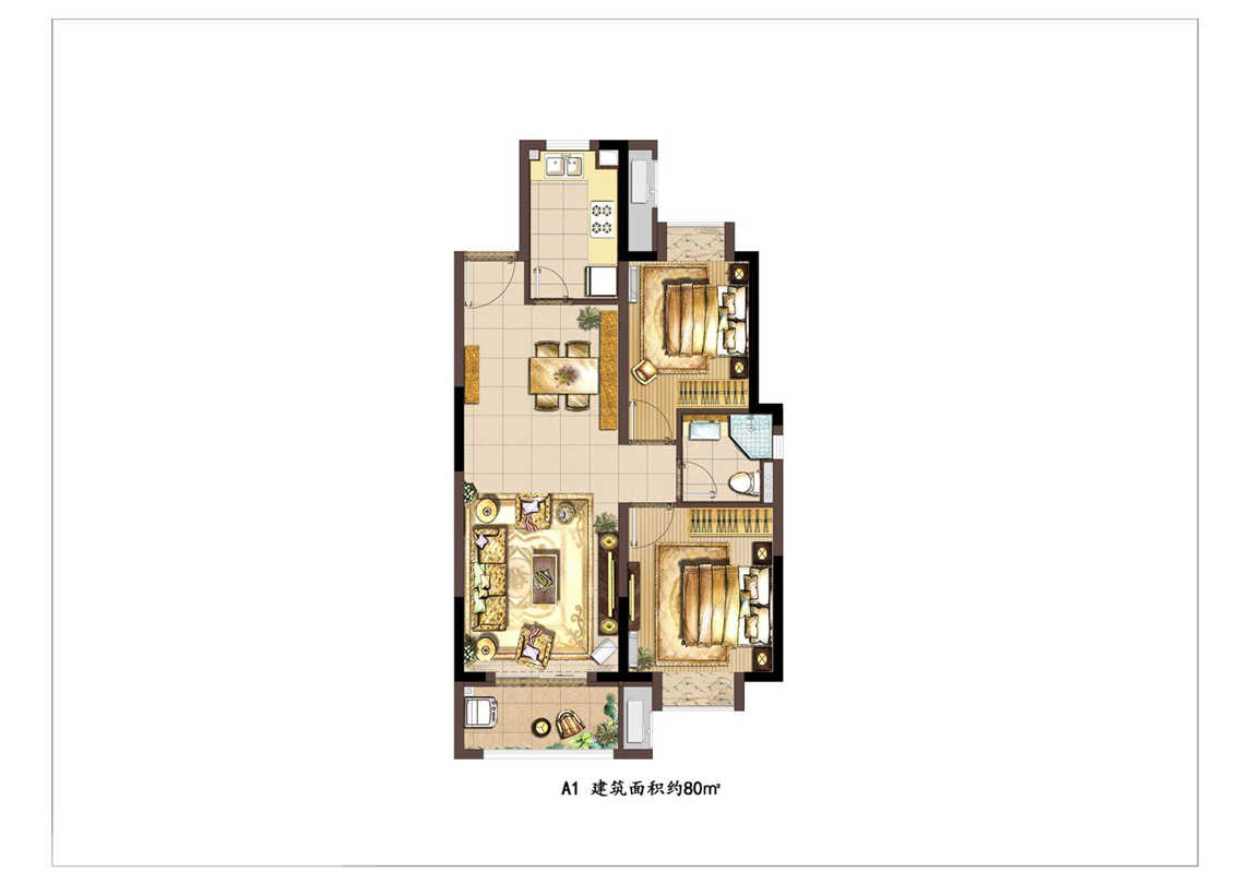 建面80平2房2厅1卫,