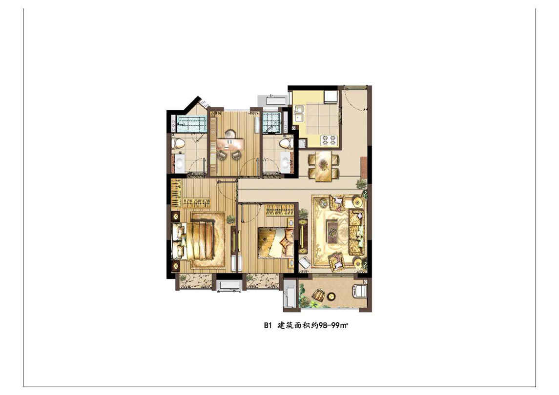 建面98平3房2厅2卫,
