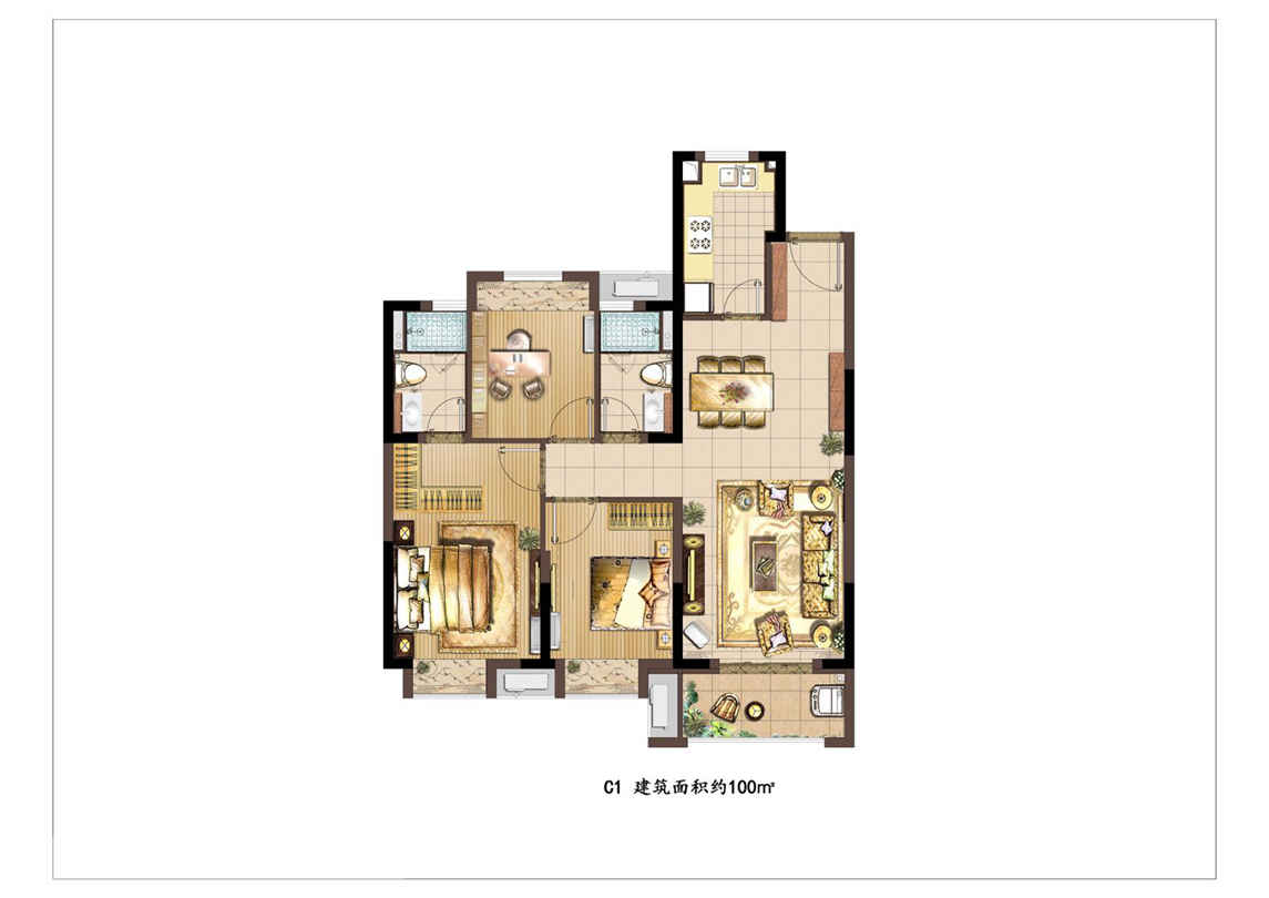 建面100平3房2厅2卫