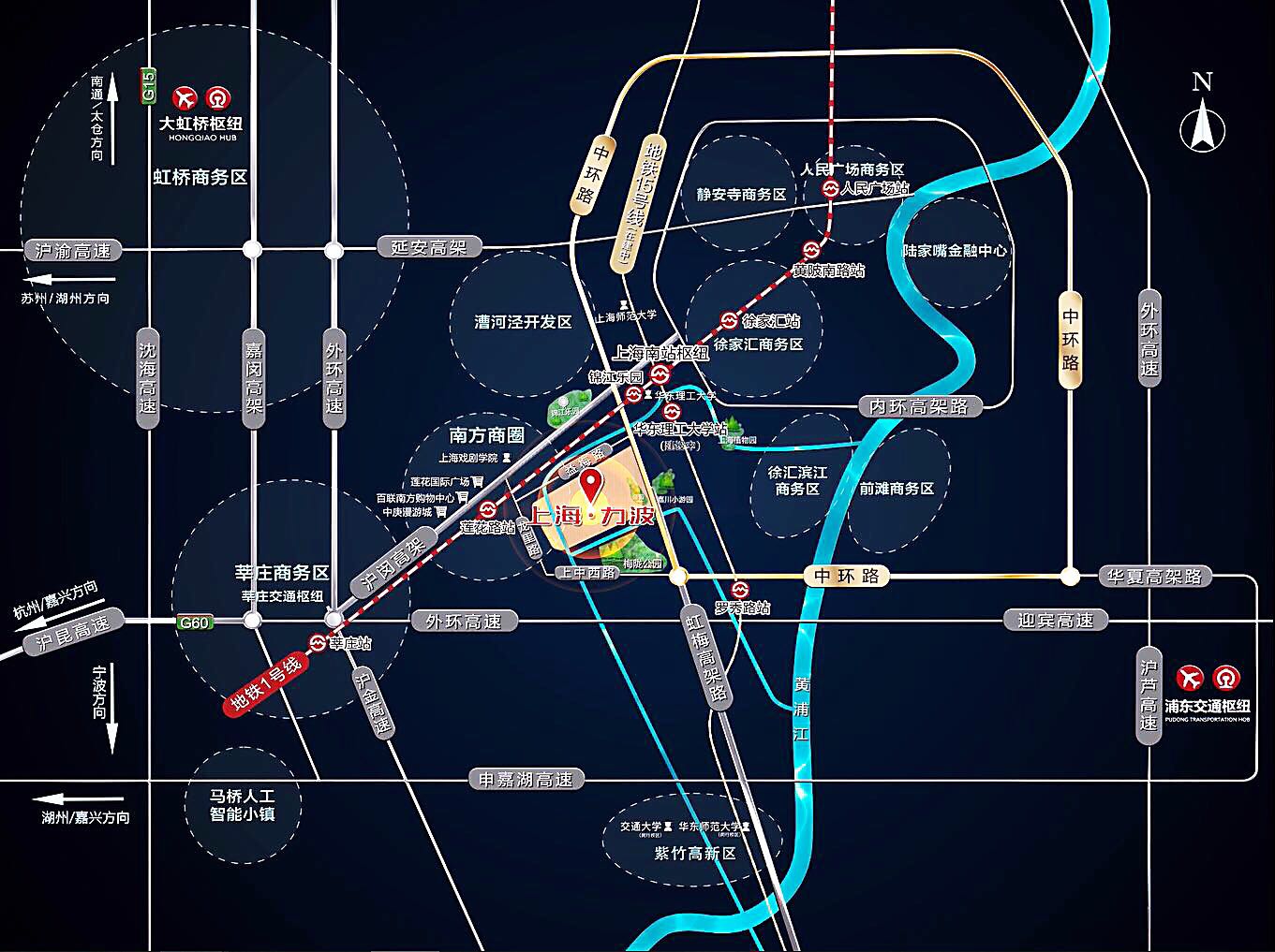枢纽:虹桥高铁机场(车程25分钟)、上海南站(9分钟)、浦东机场(40分钟)