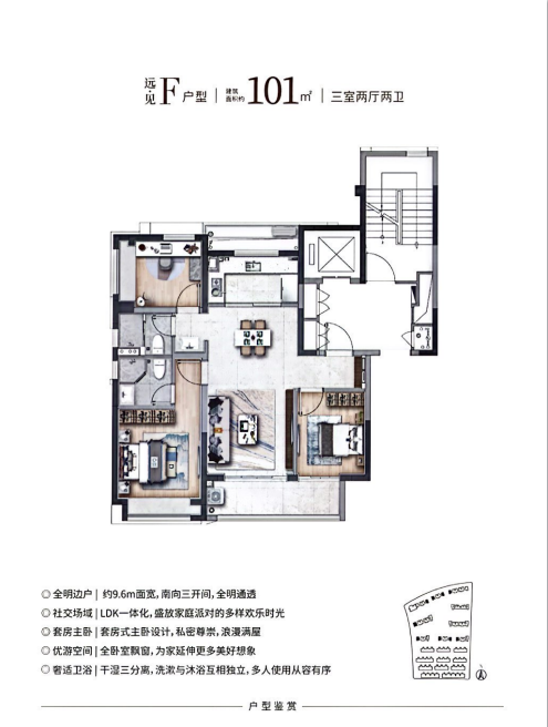 8.建筑面积:高层101㎡、叠加90-136㎡