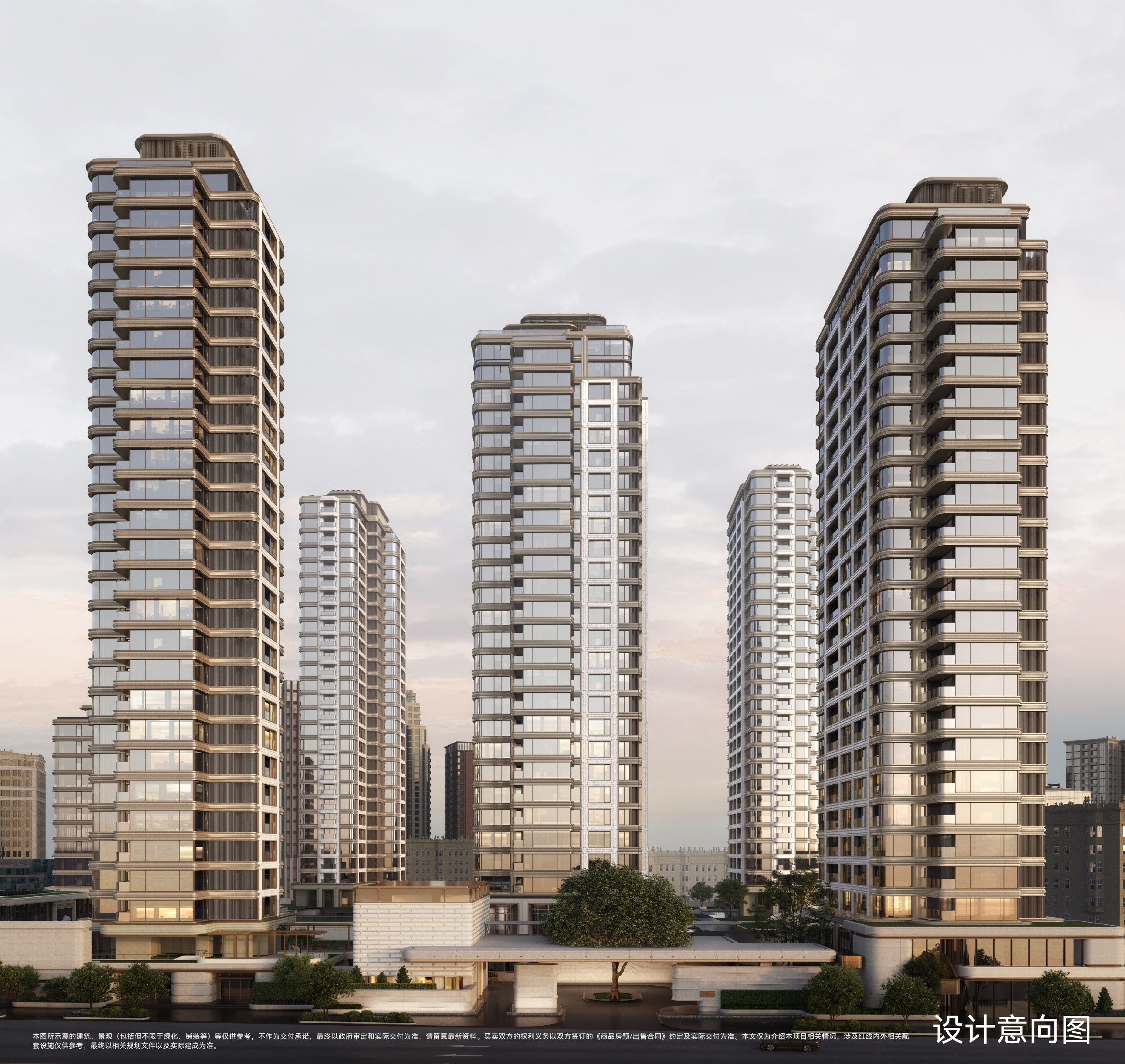 以百年古树与现代典雅的建筑立面,在繁华的都市之中构建奢华隐奢的豪宅场域。石材+金属铝板质感呈现,优雅的圆弧曲线精心雕琢,呈现显而不露的建筑美学。